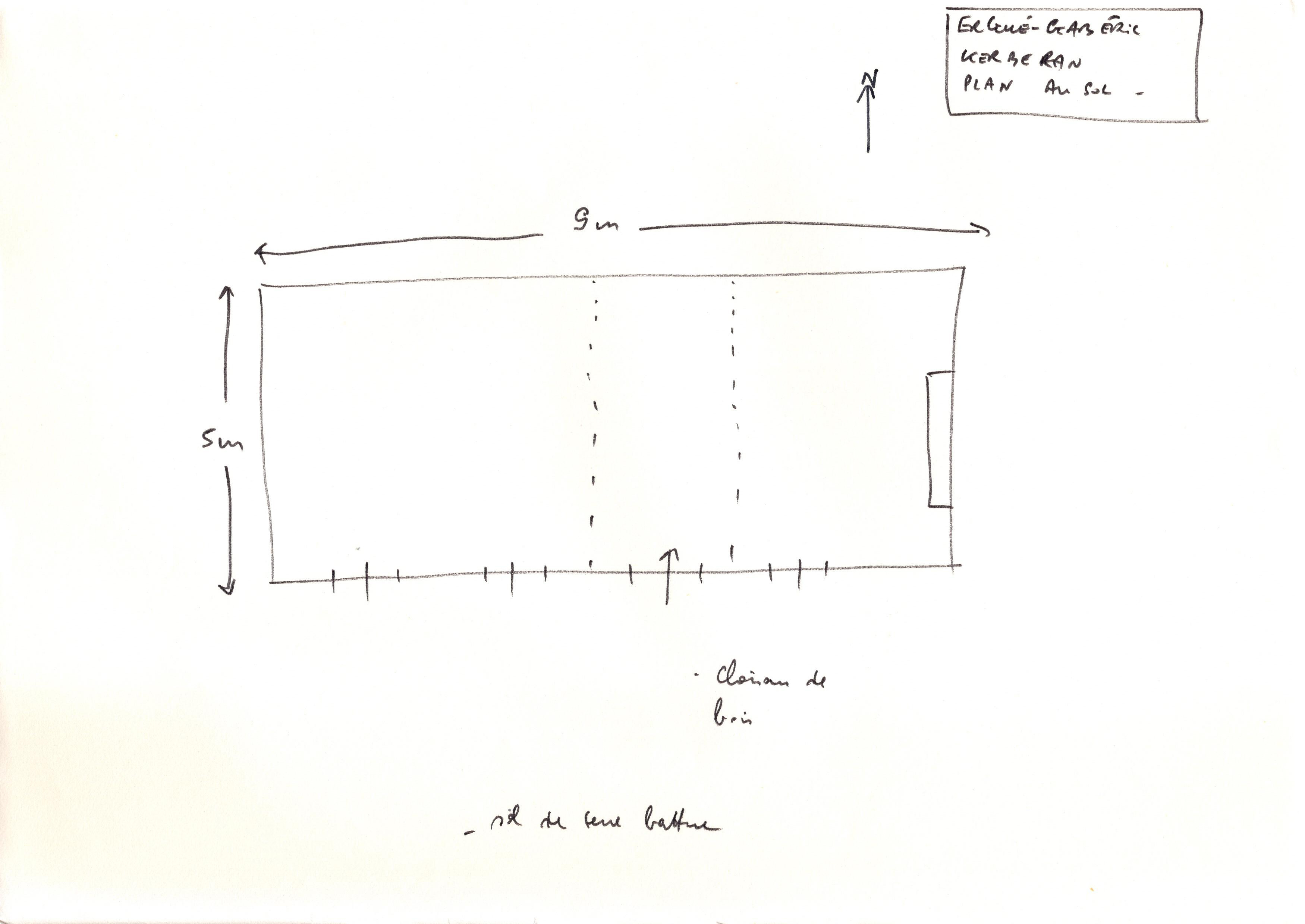 - 1 étable orientée au nord avec 1 porte et 2 fenêtres, 1 porte comblée sur le pignon gauche